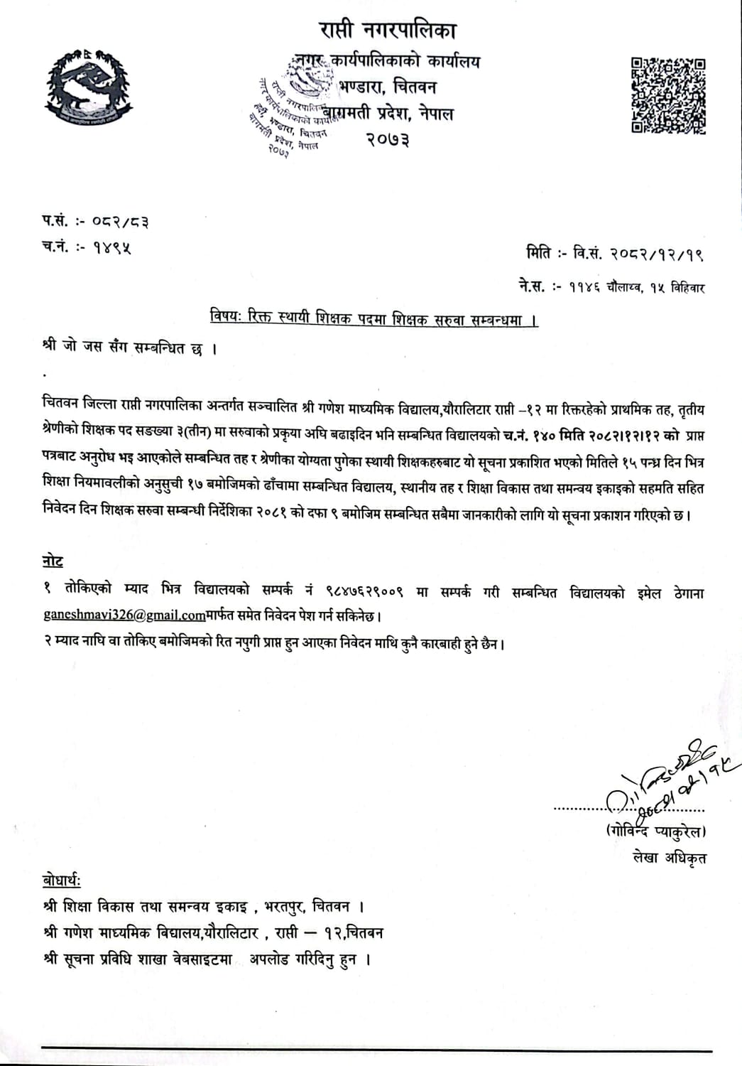 रिक्त स्थायी शिक्षक पदमा शिक्षक सरुवा सम्बन्धमा।